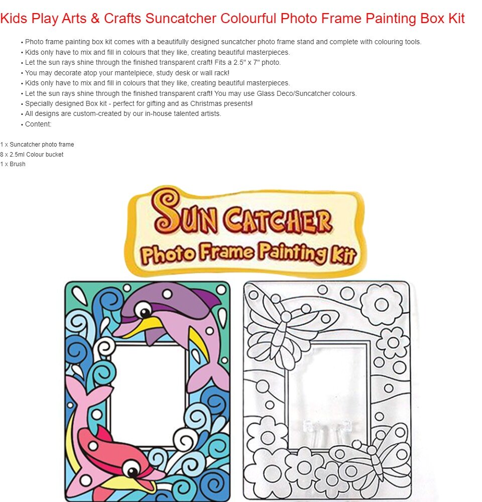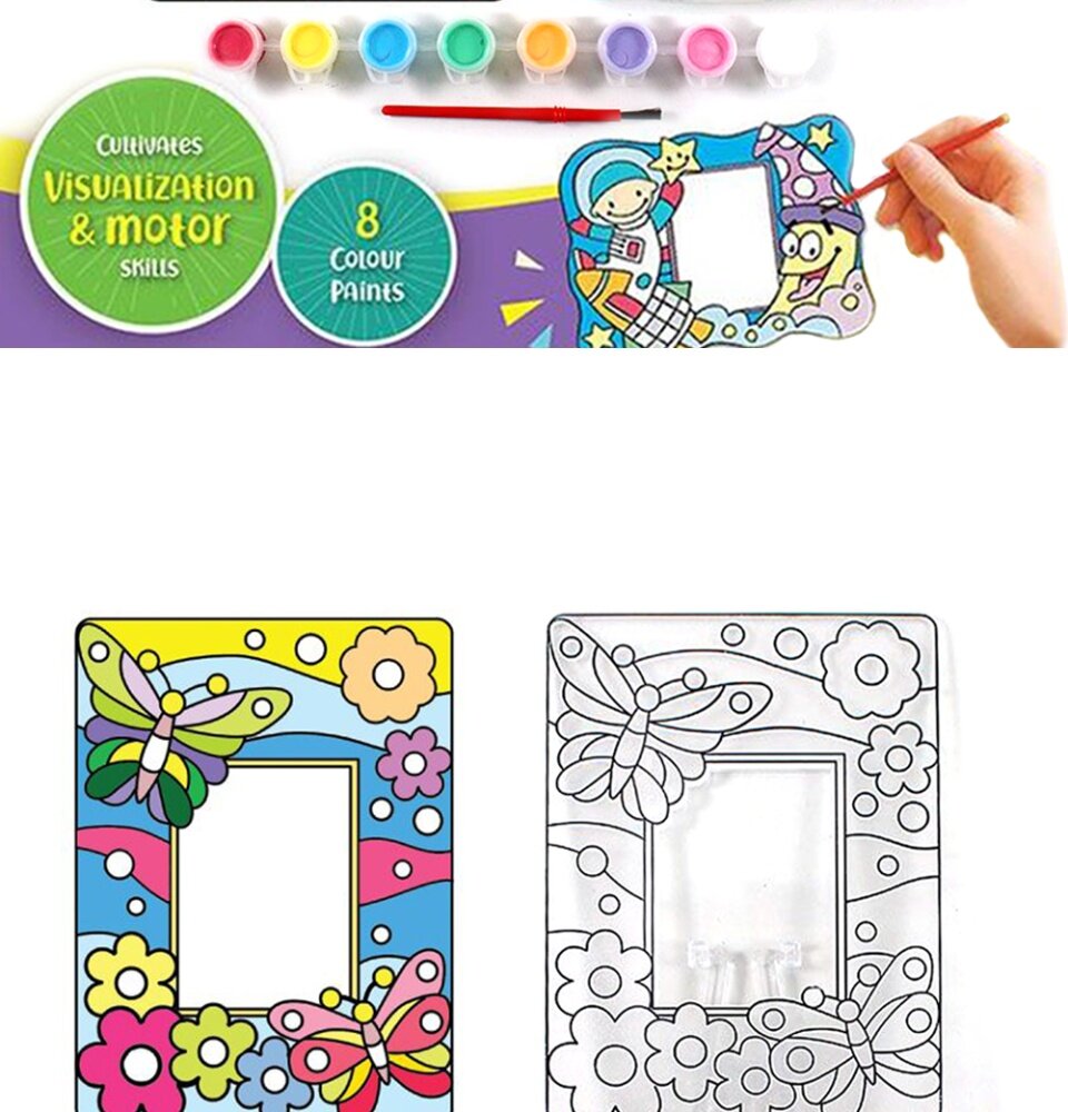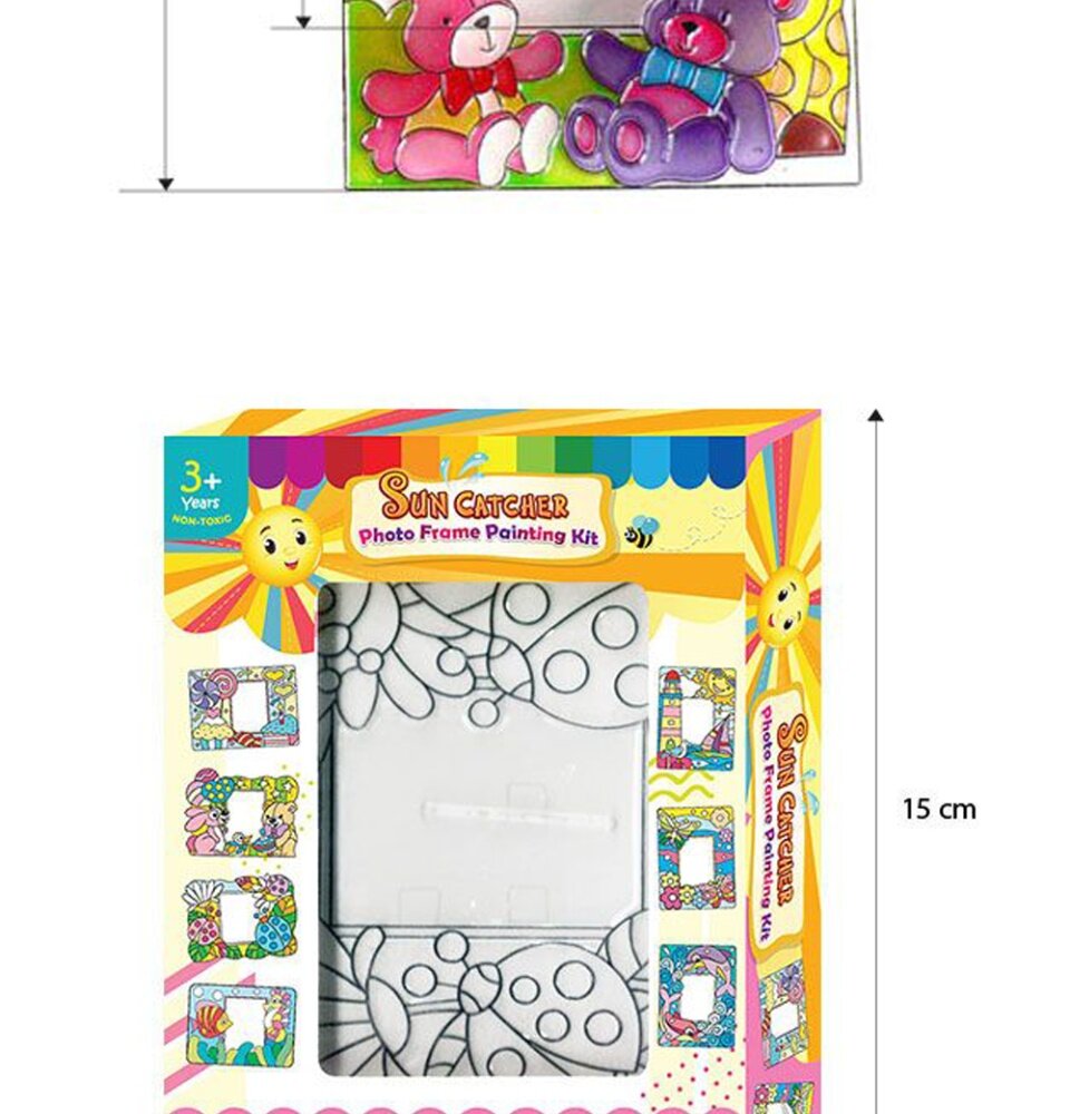 - Photo frame painting box kit comes with a beautifully designed suncatcher photo frame stand and complete with colouring tools.