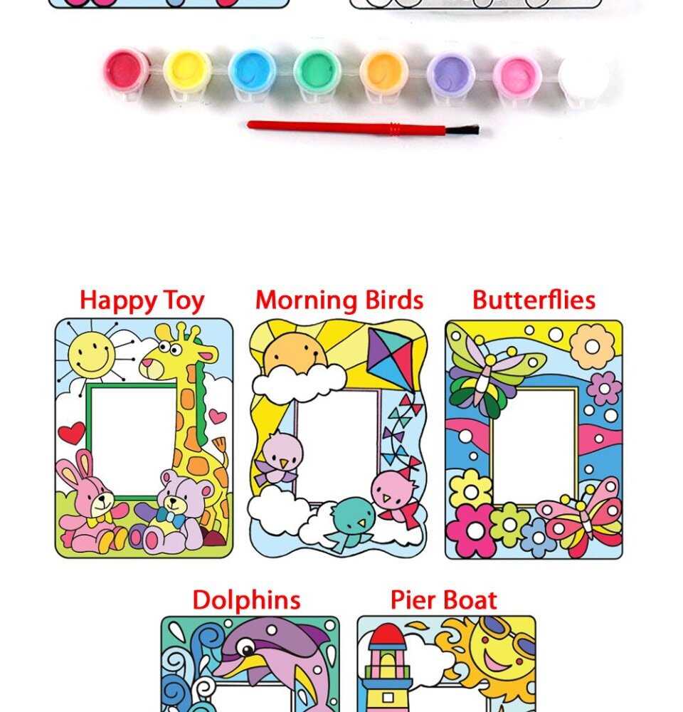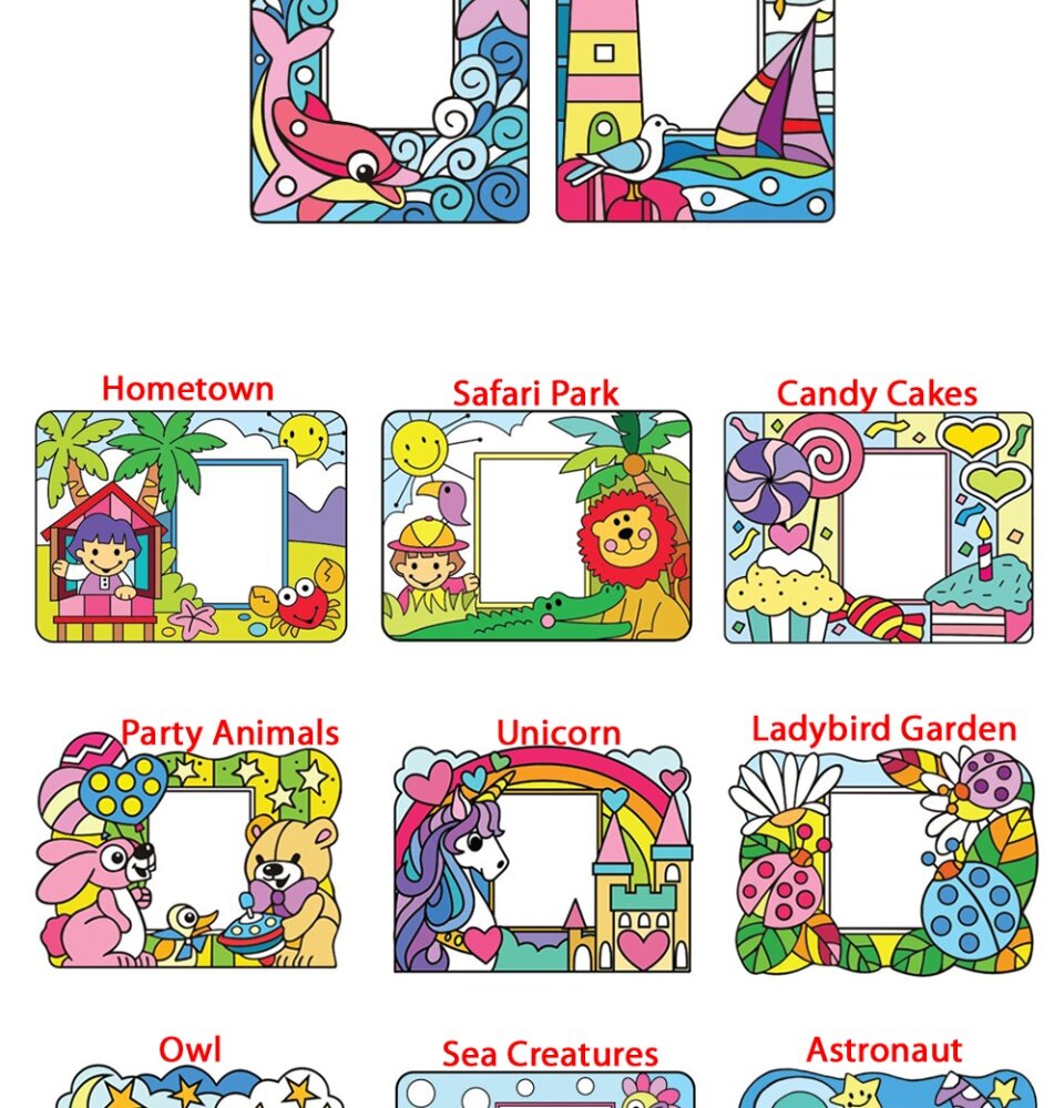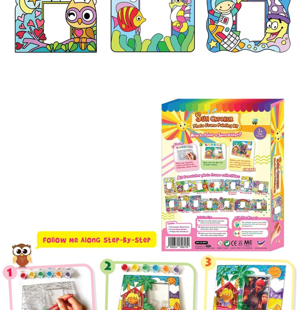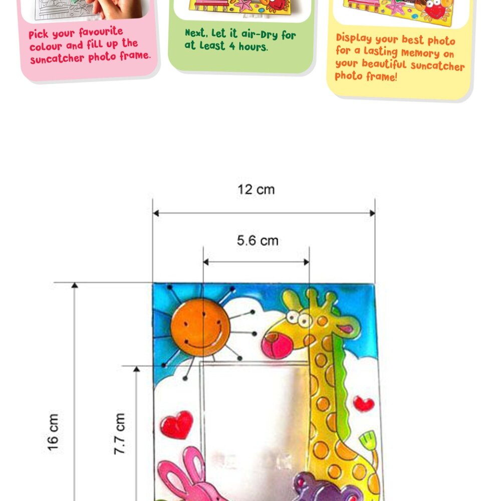 - Photo frame painting box kit comes with a beautifully designed suncatcher photo frame stand and complete with colouring tools.
