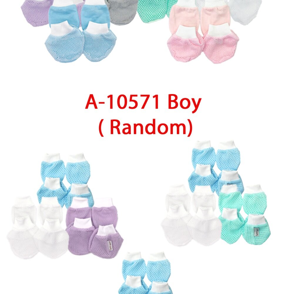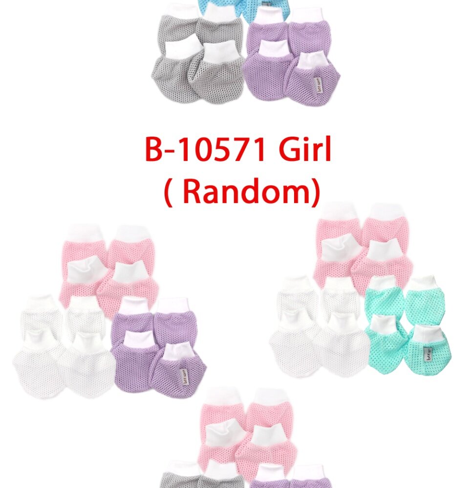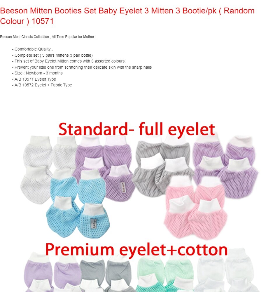 730Baby Beeson Mitten Booties Set Baby Eyelet 3 Mitten 3 Bootie/pk (Random Colour) 10571