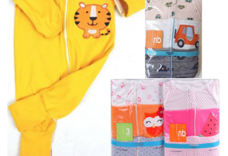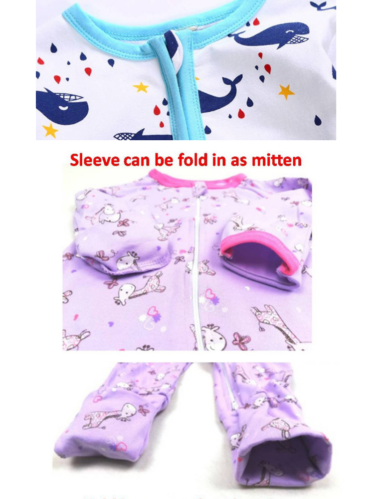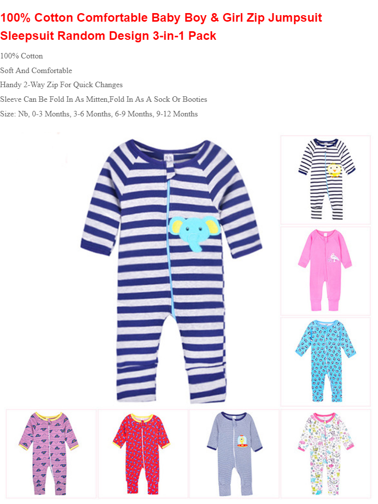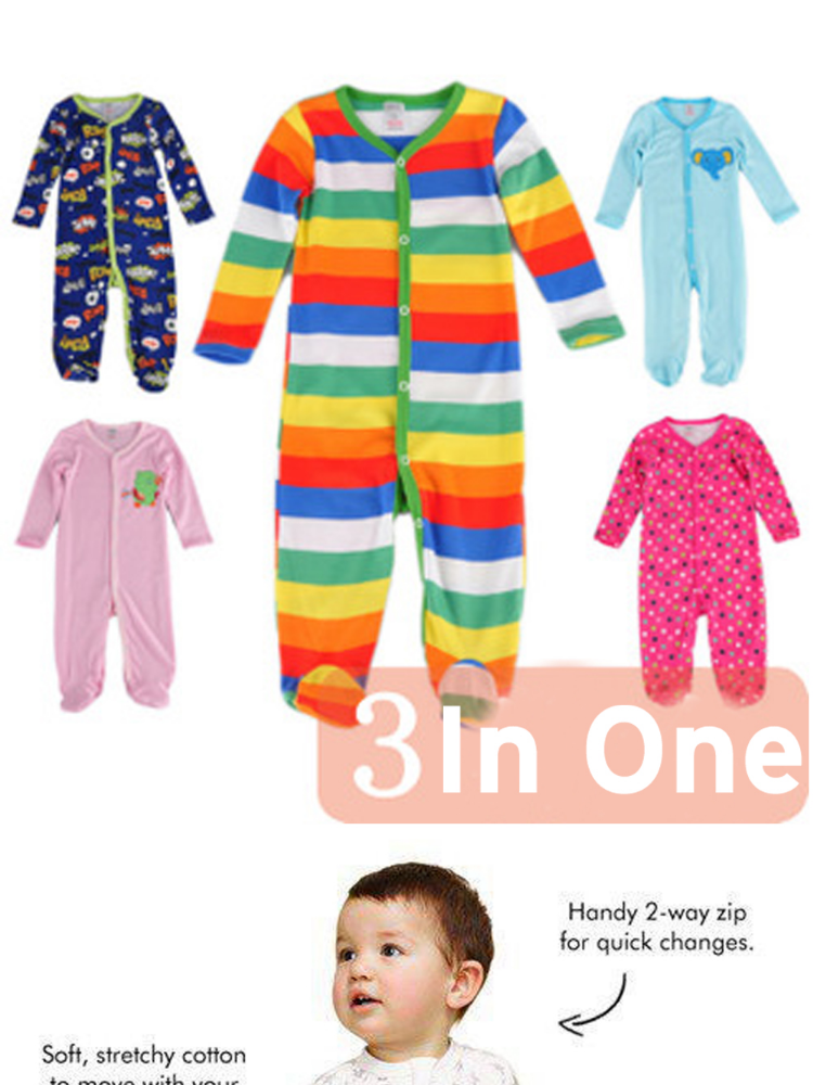 730Baby 100% Cotton Comfortable Baby Boy & Girl Zip Jumpsuit Sleepsuit Random Design 3-in-1 Pack